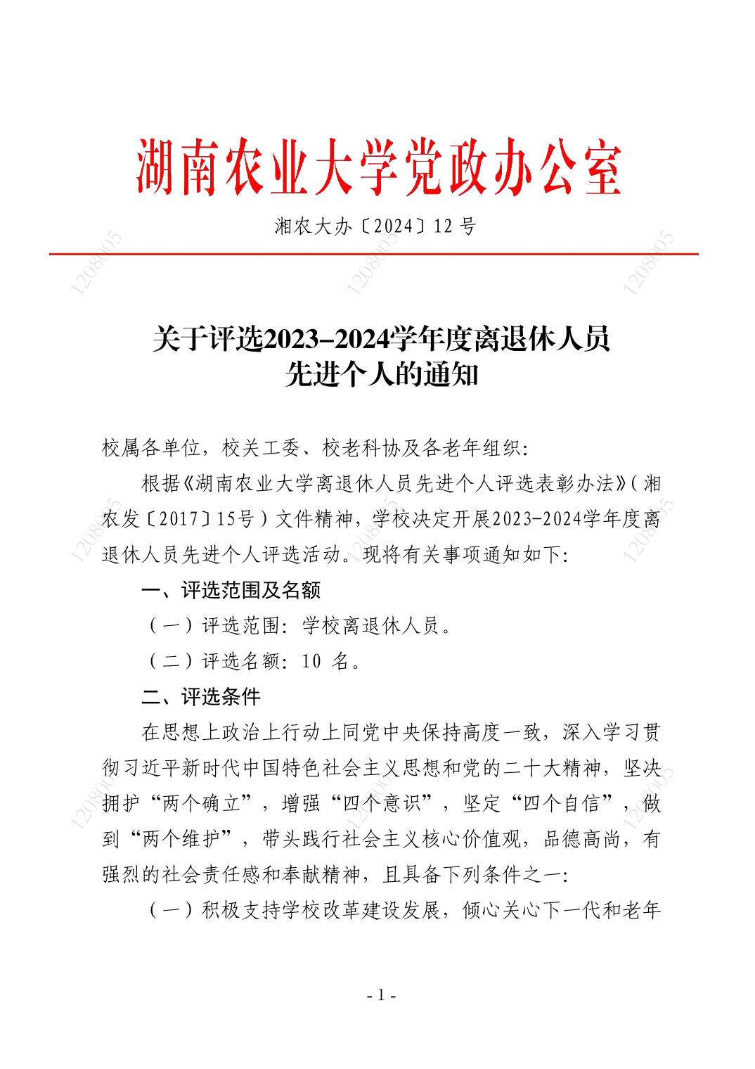 关于表彰2023-2024年度离退休人员先进个人的决定